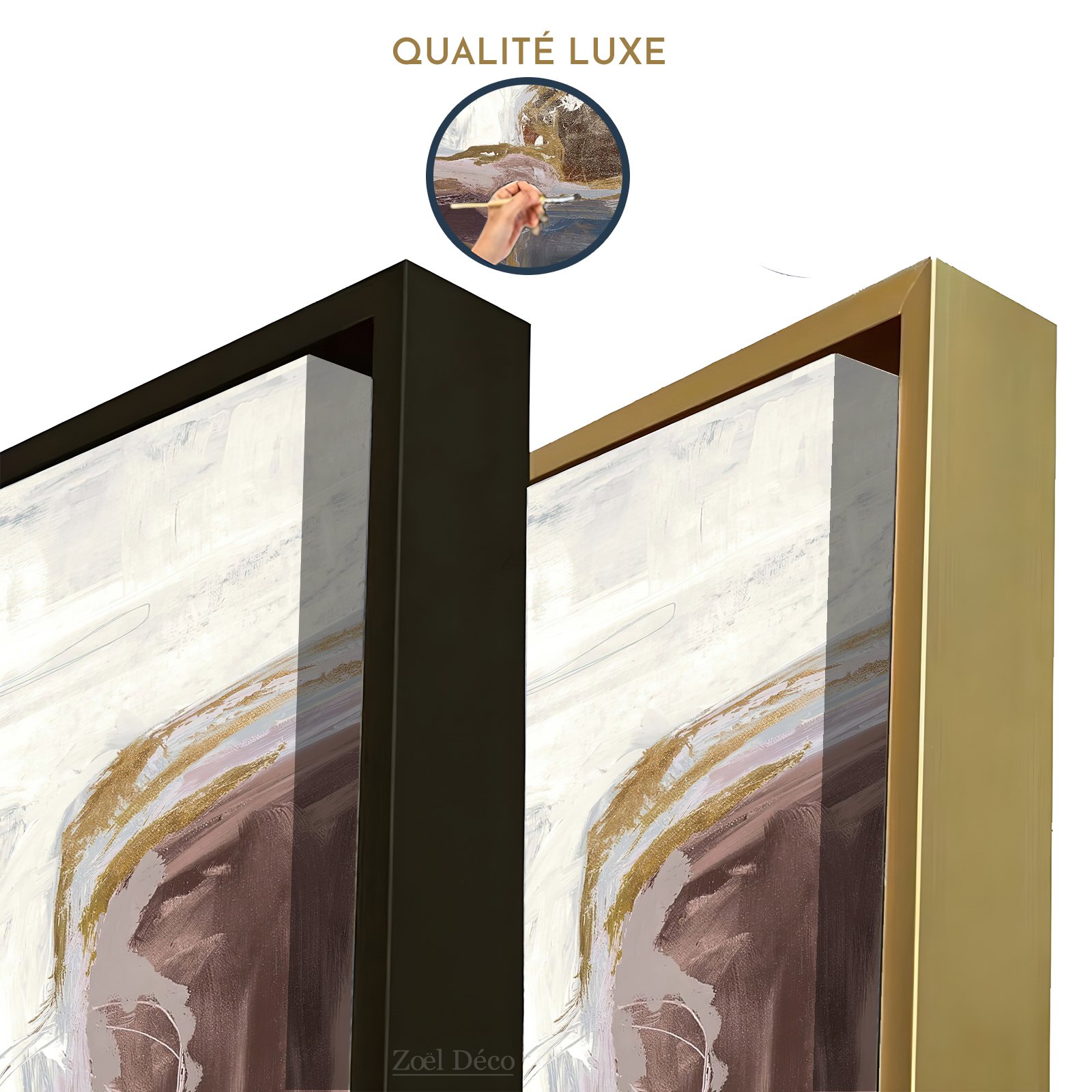 -Encadrement :  Disponible en doré . Indispensable pour mettre en valeur votre toile. Le châssis est fabriqué en bois massif de 2,5 cm.