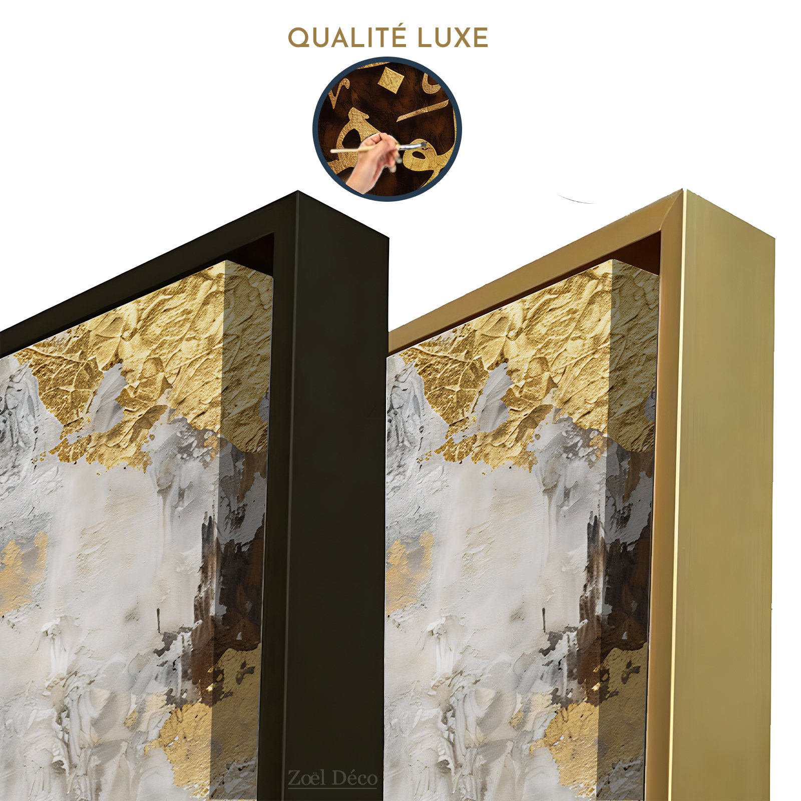 -Encadrement : Disponible en doré . Indispensable pour mettre en valeur votre toile. Le châssis est fabriqué en bois massif de 2,5 cm.