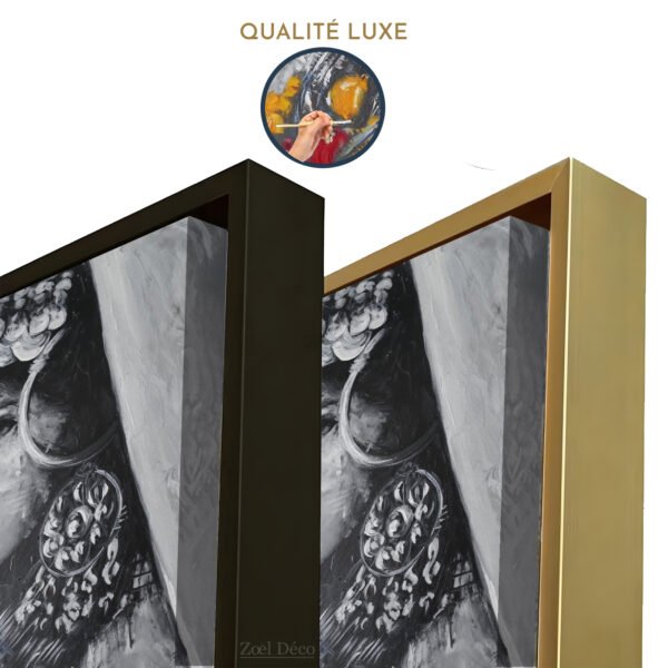 -Encadrement : Disponible en doré et noir . Indispensable pour mettre en valeur votre toile. Le châssis est fabriqué en bois massif de 2,5 cm.