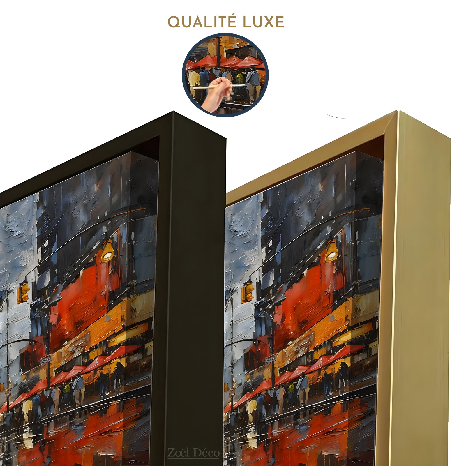 -Encadrement : Disponible en doré et noir . Indispensable pour mettre en valeur votre toile. Le châssis est fabriqué en bois massif de 2,5 cm.