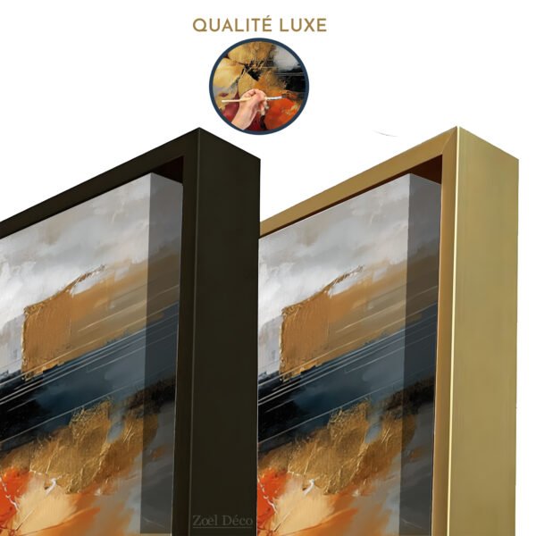 -Encadrement : Disponible en doré et noir . Indispensable pour mettre en valeur votre toile. Le châssis est fabriqué en bois massif de 2,5 cm.